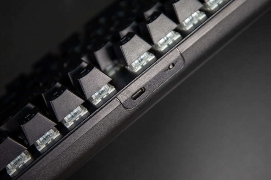 雷柏V500 PRO-87多模版机械键盘采用了分离式插线设计,在键盘的顶部有一个USB-C接口和开关,用户可以通过附赠的USB-C线进行连接,可以为内置的4000mAh电池进行充电,并且支持边充电边使用。雷柏V500 PRO-87多模版机械键盘的USB-C接口位置较深,采用常规的USB-C线进行连接时会出现容易松动的情况,因此建议用户最好使用键盘自带的连接线,也希望雷柏在后续的产品上进行优化。
