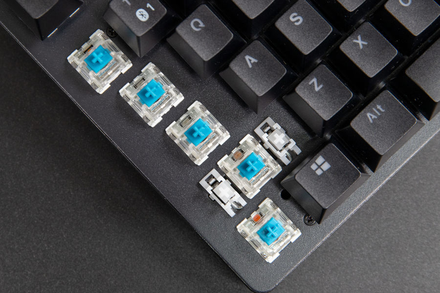 雷柏V500 PRO-87多模版机械键盘采用了雷柏自主轴体,拥有茶轴、黑轴、红轴、青轴可选,本次我们拿到的是其中的青轴版本。雷柏的这一个青轴版本在整体的触发上是较为清脆的类型,有不错的段落手感,其触发的行程较长(2.2mm),在实际的使用上有一点点肉的感觉,并且由于青轴的轴体特性,其在使用上会有噪音干扰,轴体有细微的钢丝声,如果需要带到办公室等场合使用的朋友可以考虑其他的轴体。而在使用方面,雷柏的自主轴体拥有6000万次的寿命,用户基本上不用担心手感的下降以及出现损坏的问题。