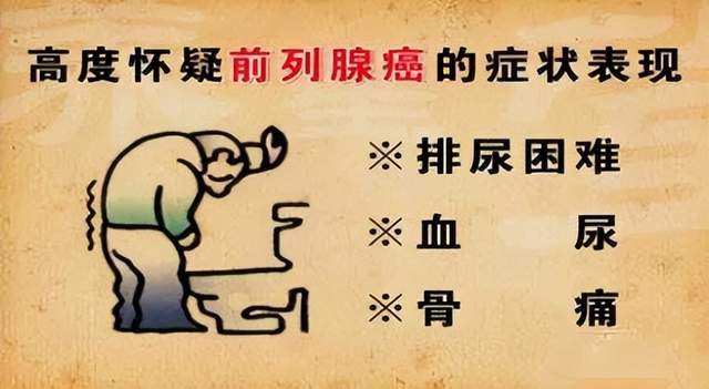 前列腺癌早期并无症状,但随着肿瘤的发展,逐渐增大的前列腺腺体会压迫尿道引起进行性排尿困难。临床表现常为尿线细、射程短、尿流缓慢、尿流中断、尿后滴沥、排尿不尽、排尿费力。