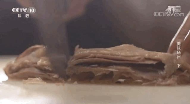 一块方干,技艺高超的扬州厨师可以片成20多片,切出的干丝不仅整齐、均匀,而且粗细不超过火柴杆,极其考验师傅功力。