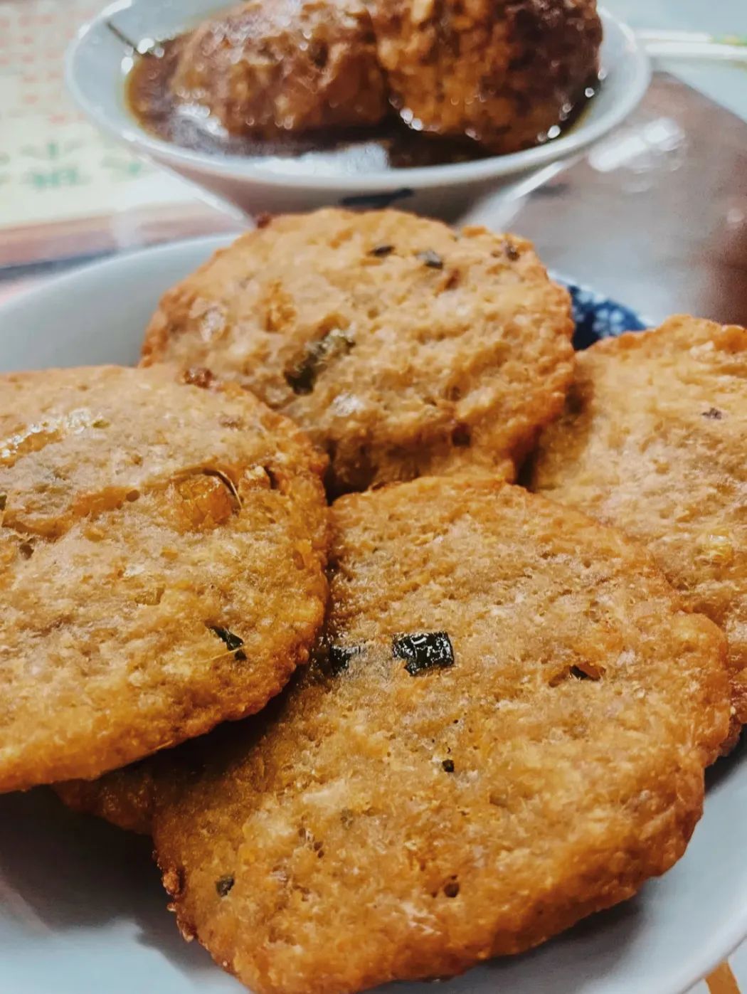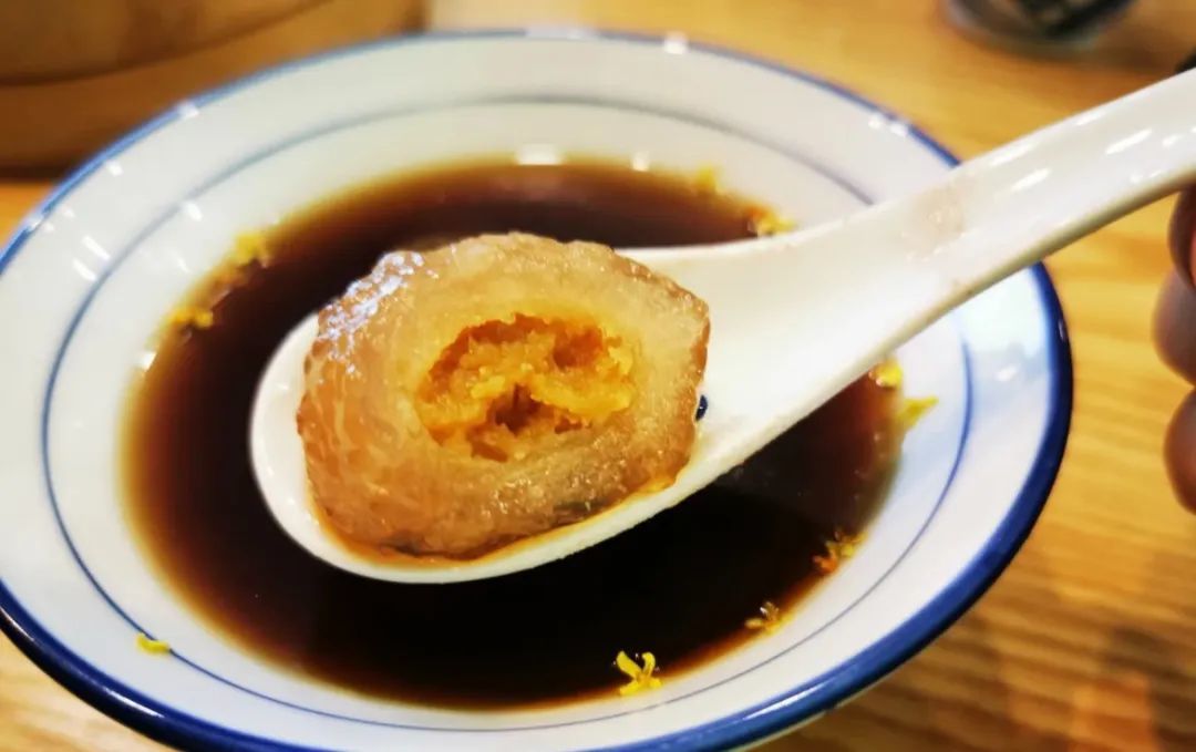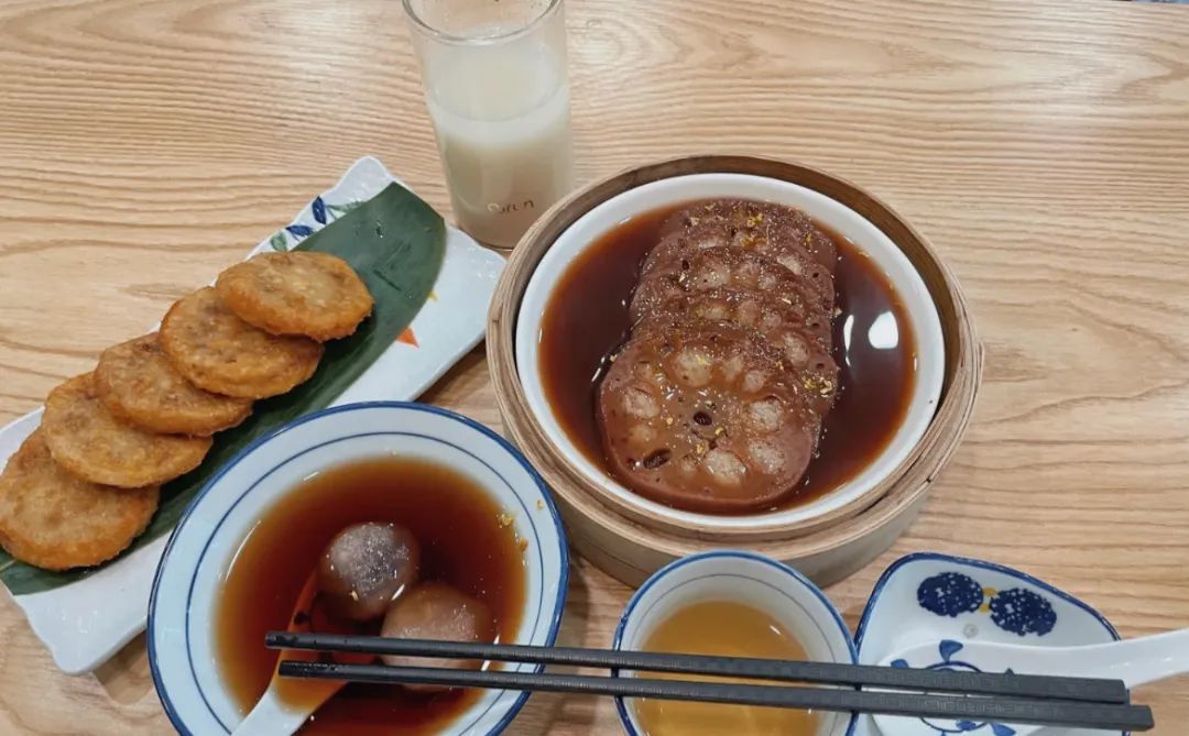 来到粗茶淡饭,必点的三个组合最多的就是藕粉汤圆+桂花糯米藕+农家煎藕饼。有甜有咸,有软有脆,口感互补得刚刚好。