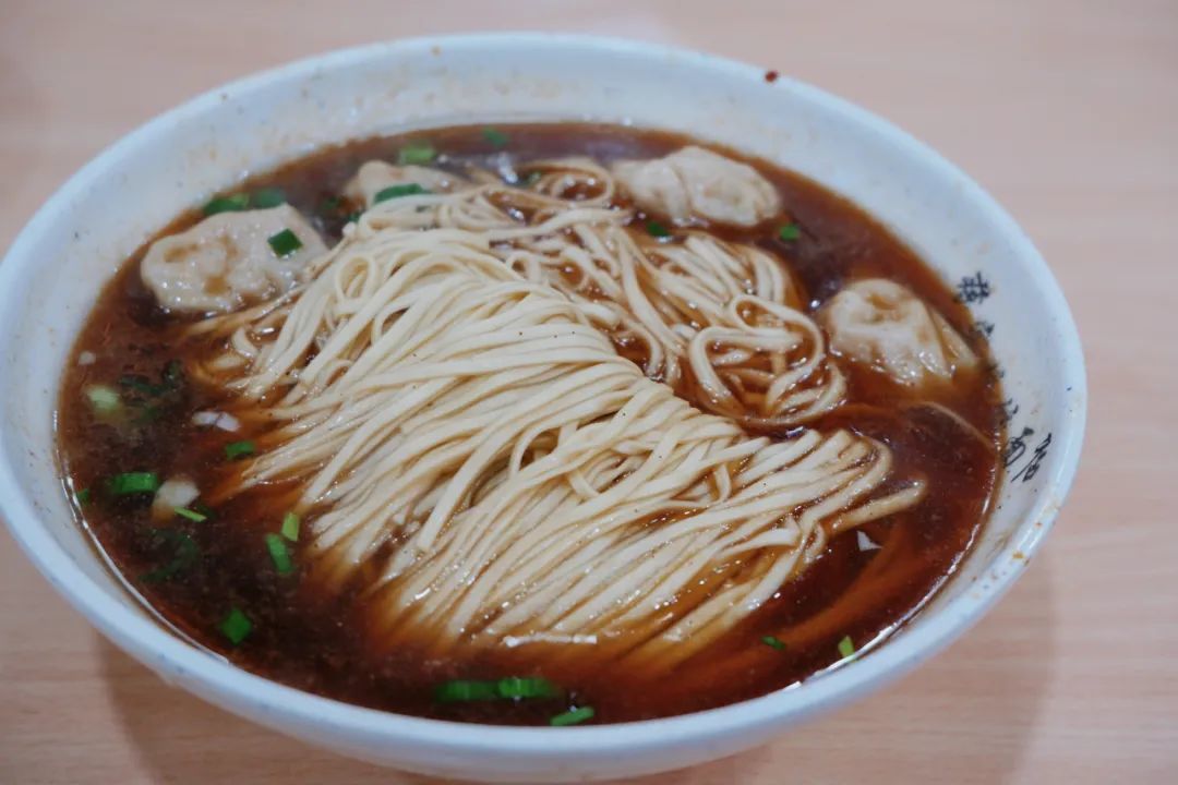 阳春面,看似一碗简单的面条,一点浓汤,几根葱花。