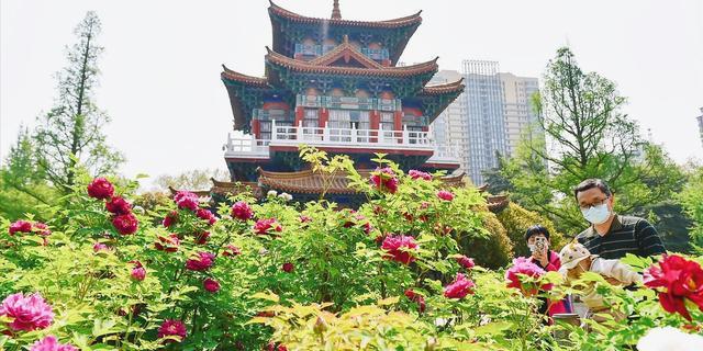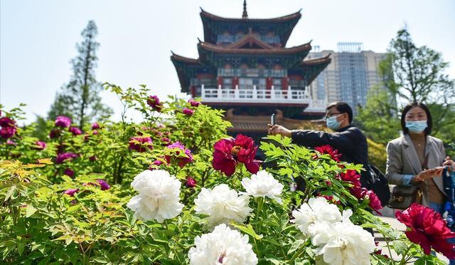 牡丹花开的时节,花朵与古都的建筑为伴,映衬得花更美,建筑更为雄伟。