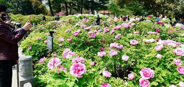 这个假期,天气晴好,王城花园的牡丹竞相开放,早中晚各个花期的牡丹都有,