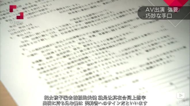 当女演员发现后,经纪人还会持续对女演员洗脑,谎称某些著名女演员在职业生涯开始时也曾拍摄AV。如果她们坚持拒绝,经纪人就会搬出签约合同。