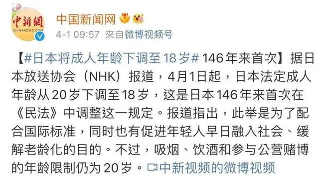 近期,日本民法修改引起大量关注,最受瞩目的一则,当属下调成年年龄。经修改后,从今年4月1日起,日本成人法定年龄从20岁下调至18岁。