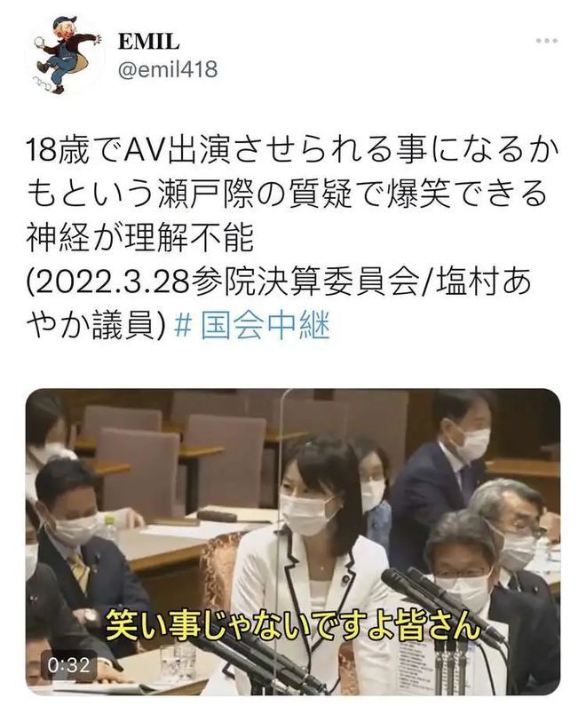 盐村彩香在会议上就此事发表评论时,其他议员发出了笑声