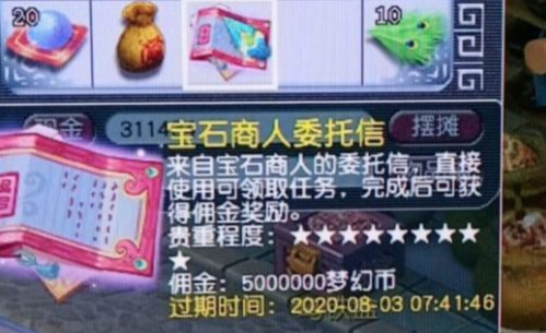 委托信是口袋版签到奖励改版以后上线的新东西,委托信中放着不同金额的梦幻币,这位玩家获得的就是宝石商人的委托信,宝石商人的委托信中放到500万的梦幻币,最顶级的是李世民的委托信,李世民的委托信里放着1000万的梦幻币,以前神秘的委托性玩家只能在口袋签到的伤害购买,现在又多了一个获得方式,那就是天下识君任务,只是不知道后期还会不会上线其他的获得方式,在那个时候系统是不是不会奖励物品了?反正大家得了东西也得卖,就直接奖励玩家梦幻币了。