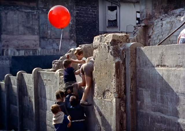 扮演这个孤独的、爱游荡的小男孩的,就是导演艾尔伯特·拉摩里斯的儿子帕斯卡尔。他带着红气球穿过曲径通幽的街道。