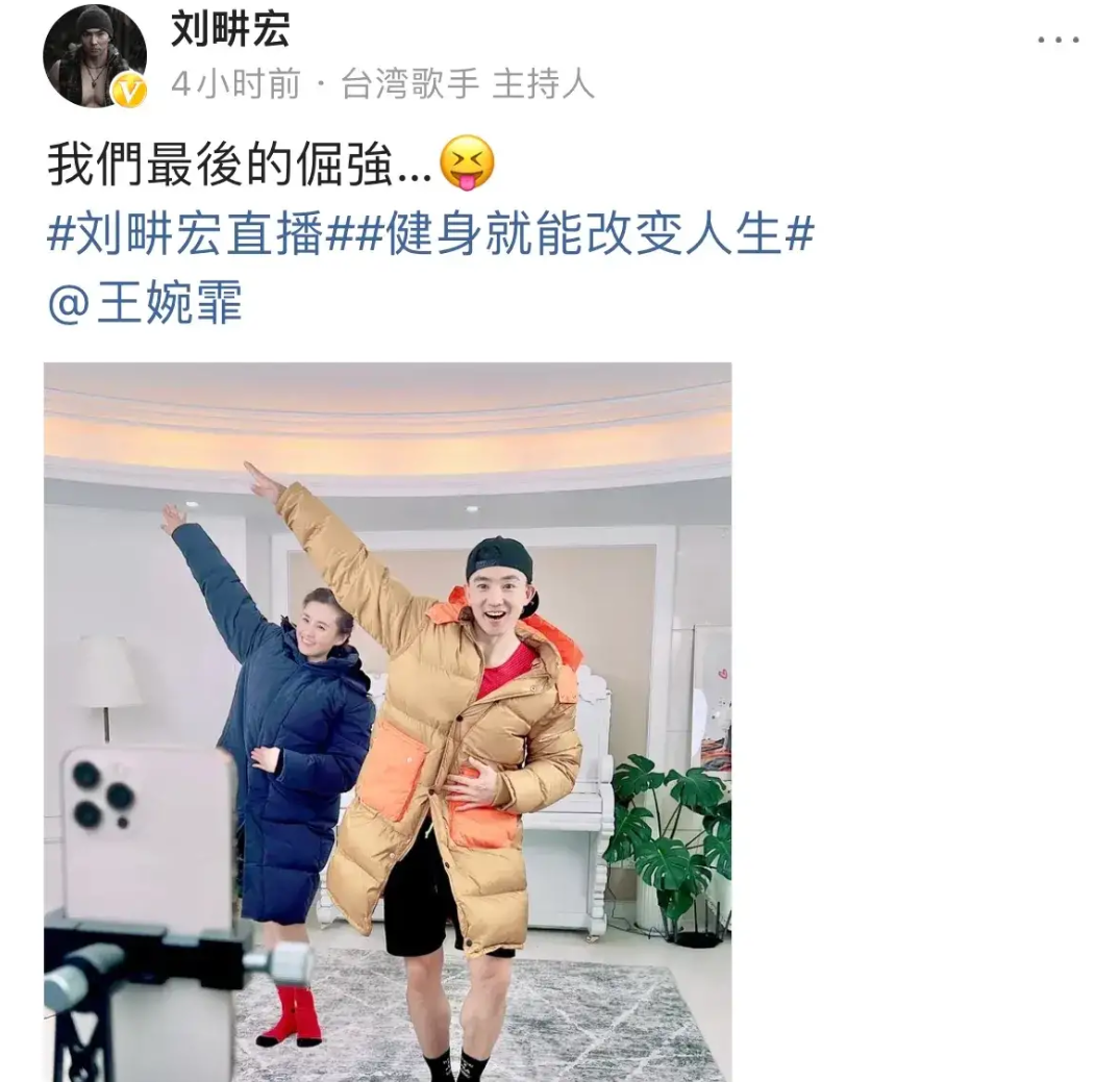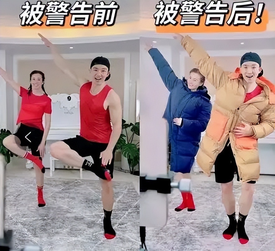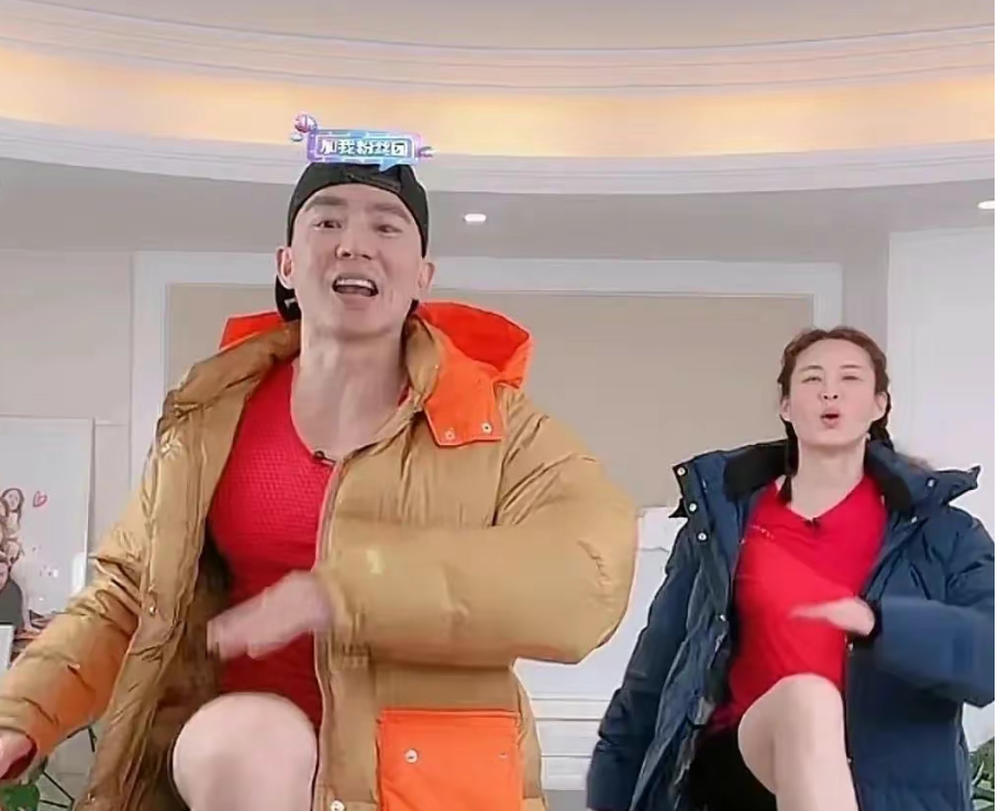 为了能够继续带大家训练,刘畊宏夫妻两个直接穿羽绒服上阵。但持续穿羽绒服运动着实难为人了,因而两人蹦蹦跳跳了半个小时便脱下了衣服。随后换上了一身运动衣。