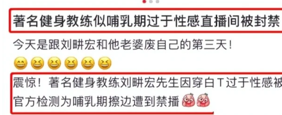 近日,周杰伦挚友刘畊宏在和太太王婉霏健身直播时,突然被系统禁播。原因居然是画面太过性感。本以为是王婉霏穿着暴露。但后来才发现居然是刘畊宏胸肌太大,穿白T恤过于性感被官方检测为哺乳期擦边导致禁播。这原因简直不要太好笑。