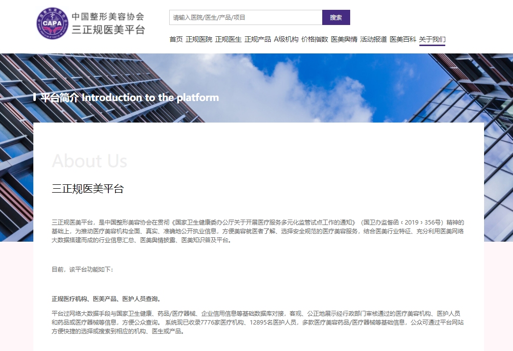 今年1月18日,由中国整形美容协会主办、人民健康协办、远想生物及鸣医智造科技携手发布的“三正规医美平台”。这一平台可提供医院查询、医生查询和产品查询服务,能够帮助消费者更准确地获取医生资质、服务价格、等级评价、产品授权等相关信息,做出正确决策。据了解,中整协推出的“三正规医美平台”目前只有网页版,并没有App版本。这意味着,这款医美查App挂羊头卖狗肉,打着中整协的旗号冒充“官方”平台。