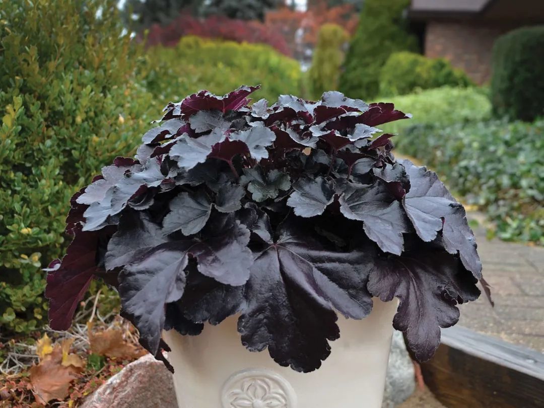 上面是黑色叶的矾根