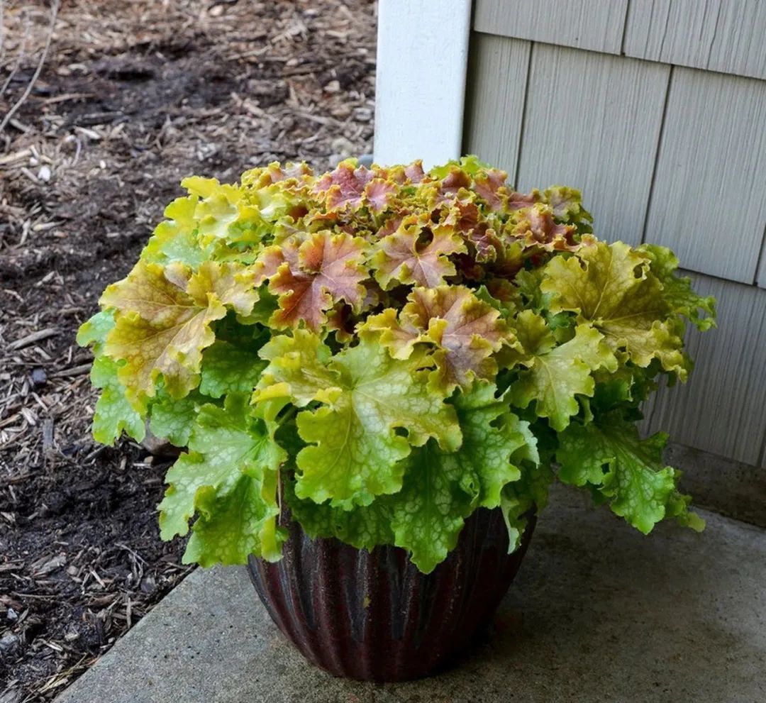 矾根是很多花友都喜欢的一种观叶植物,它特别适合养在背阴的阳台上或阴凉的院子里,它有非常多的品种,有叶子翠绿色的,也有一些叶片呈黄色、绿色、红色和深紫色等叶色,叶子斑斓亮丽。