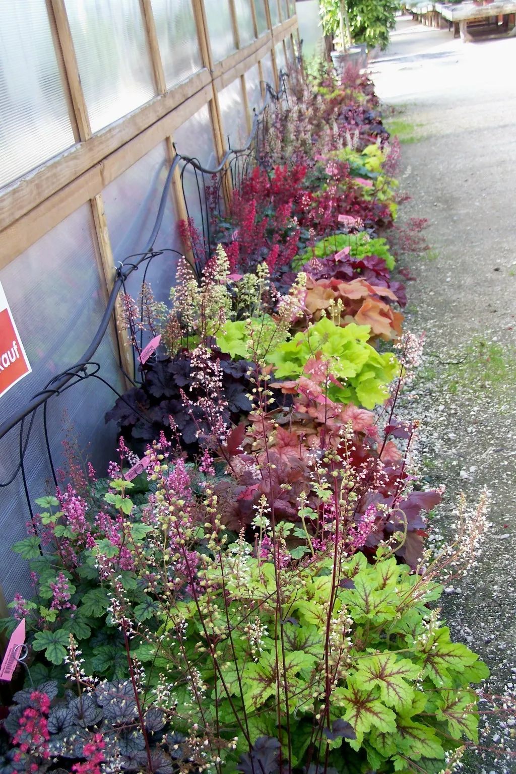 背阴墙边栽种的矾根花墙
