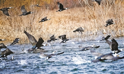 北京青年报记者了解到,密云水库增殖放流工作正在进行中,预计半个月内将有581吨净水鱼苗分批投入密云水库。而正因为大批鱼苗入库,至少2000只以上西伯利亚银鸥、红嘴鸥、鸬鹚、苍鹭等鸟类纷至沓来,上下翻飞着觅食。详见A3版 摄影/本报记者 郝羿