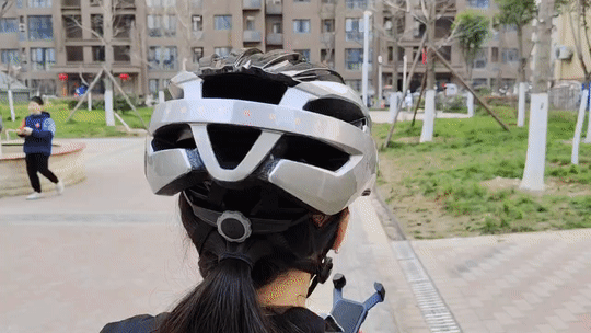 在转向的时候,可以提前通过手机APP控制头盔后部的转向灯,也可以通过闪控左右键控制,这个大家在骑行时可以根据需要自行选择。