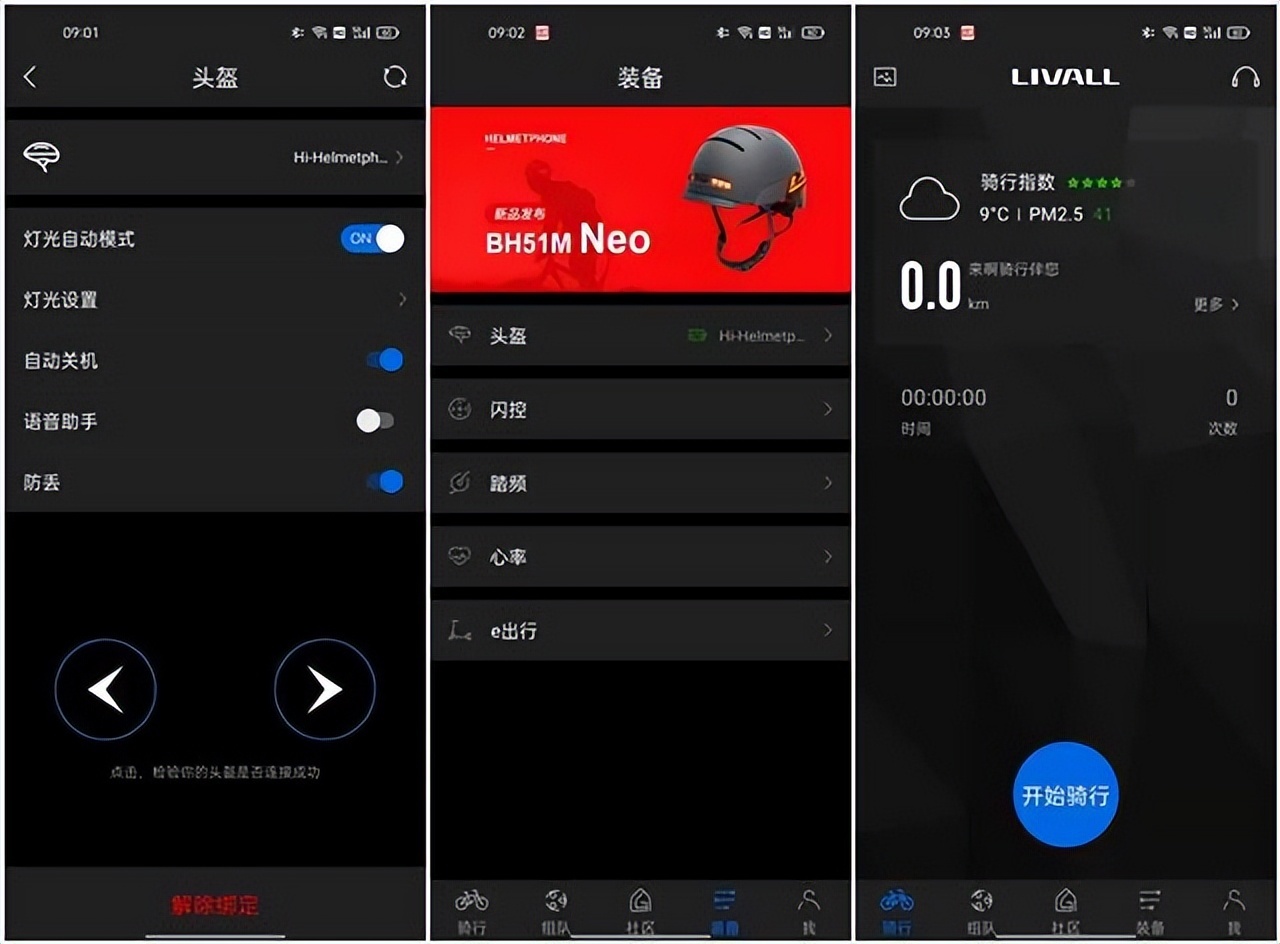 第二个则是防丢功能,头盔与手机连接后,距离超过15米会自动报警提示。