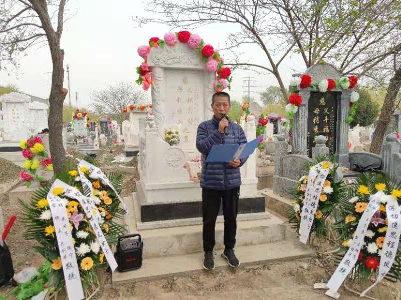 由詹厂庆先生诵读“墓志铭”,表示追思,并带领各位嘉宾一起向程德凤前辈墓碑三鞠躬,缅怀为八卦掌传承发展做出贡献的历代先贤。