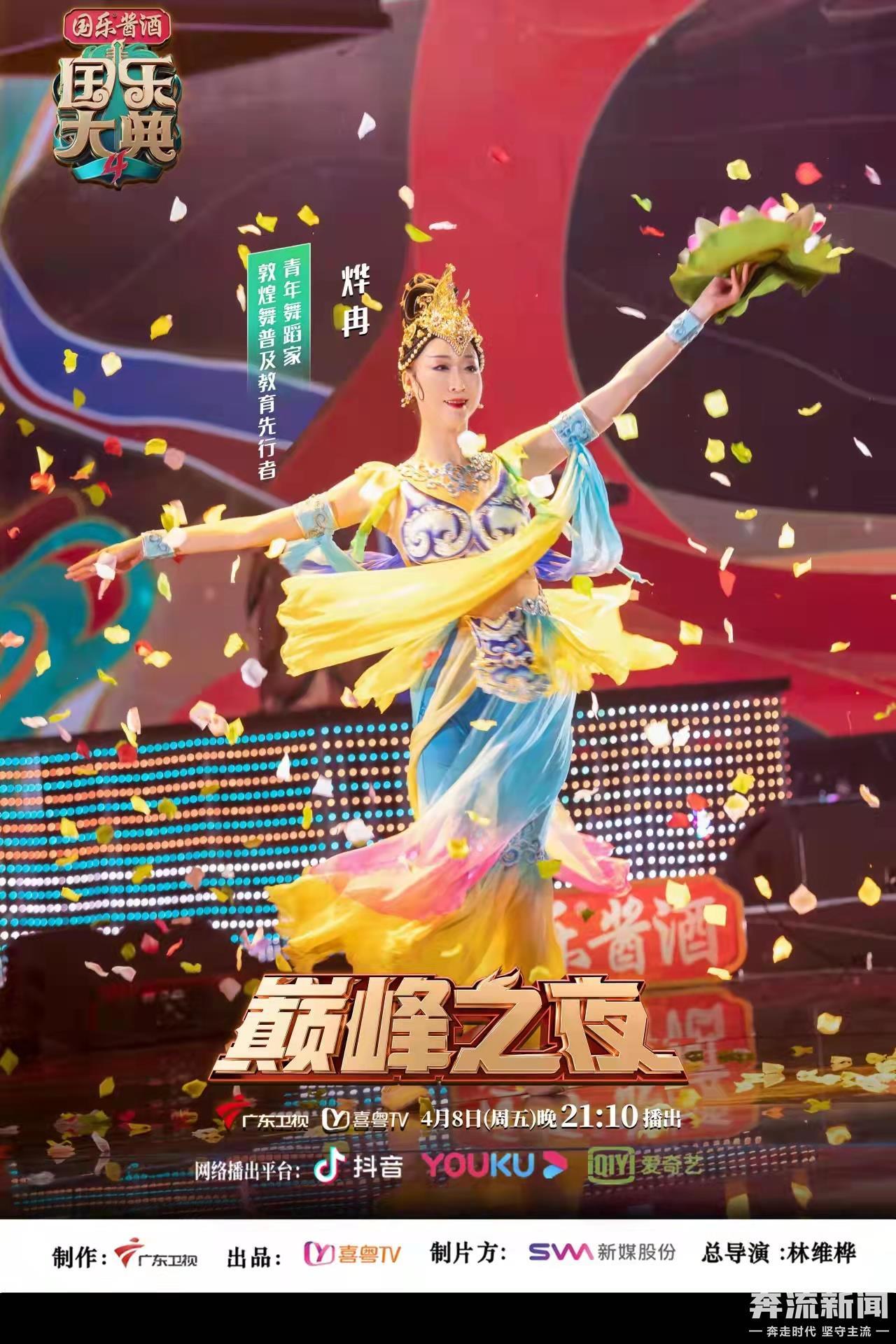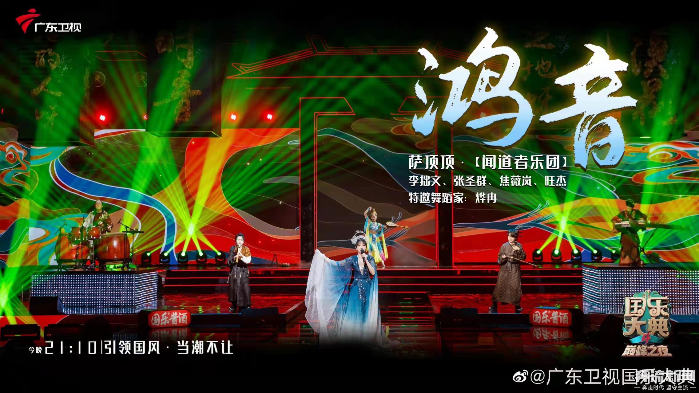 4月8日晚,广东卫视《国乐大典》第四季上演收官之作——“巅峰之夜”,各路国乐名家、人气乐团、跨界艺人合力奏响千年国乐新篇章。其中,萨顶顶和“闻道者乐团”一曲敦煌色彩浓郁的《鸿音》与助演嘉宾烨冉原汁原味的敦煌舞跨界对话,曲中的敦煌国潮和舞中的敦煌国风灵魂深处的激情碰撞,带给观众耳目一新的国潮文化视听盛宴,让听者仿佛置身于大漠黄沙之中。