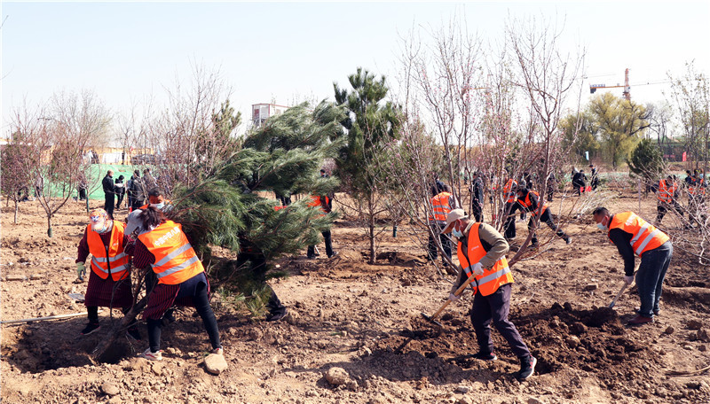 4月7日,沧州市园博园植树现场。河北日报通讯员 何学林摄