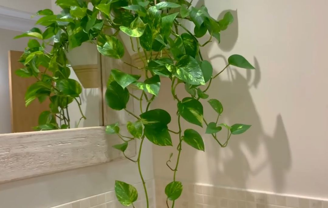 黄金葛就是绿萝的一个品种,它适合吊盆养护。枝条和叶子可以垂下来生长,叶片看起来非常有亮泽,它是特别喜欢湿润的环境,对空气湿度要求较高,可以定期清洁叶片,这样可以保持良好的生长状态。