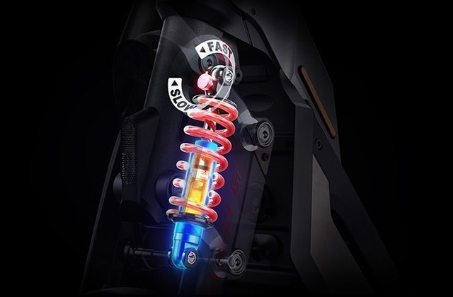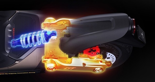 GT系列全系标配前后15级阻尼可调油压减震器,用户可根据使用场景和喜好对于车辆进行个性化调教,无论是在平坦柏油路面上的高速巡航或是在乡间小道的越野探索,九号GT滑板车都将以较好的状态奉陪到底。