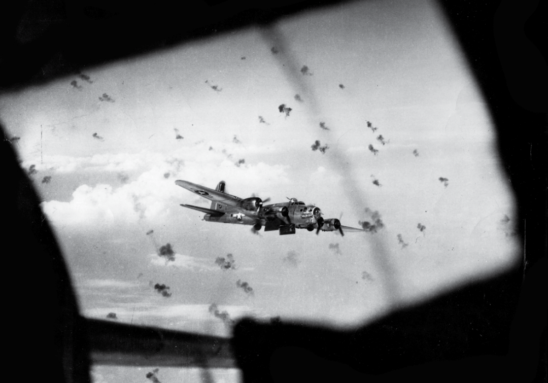 然而,在实战中实现精确空袭是另外一回事。在敌人防空系统的威胁下,迫使B-17轰炸机在更高的高度飞行,因为保持慢悠悠的、笔直的航线会带来很大的风险,这就导致瞄准点会被云层、烟雾和爆炸产生的碎片所遮挡。
