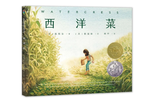 《西洋菜》英文版封面,右侧居中为的是“纽伯瑞儿童文学奖”奖章。