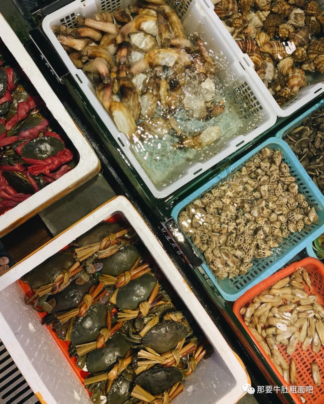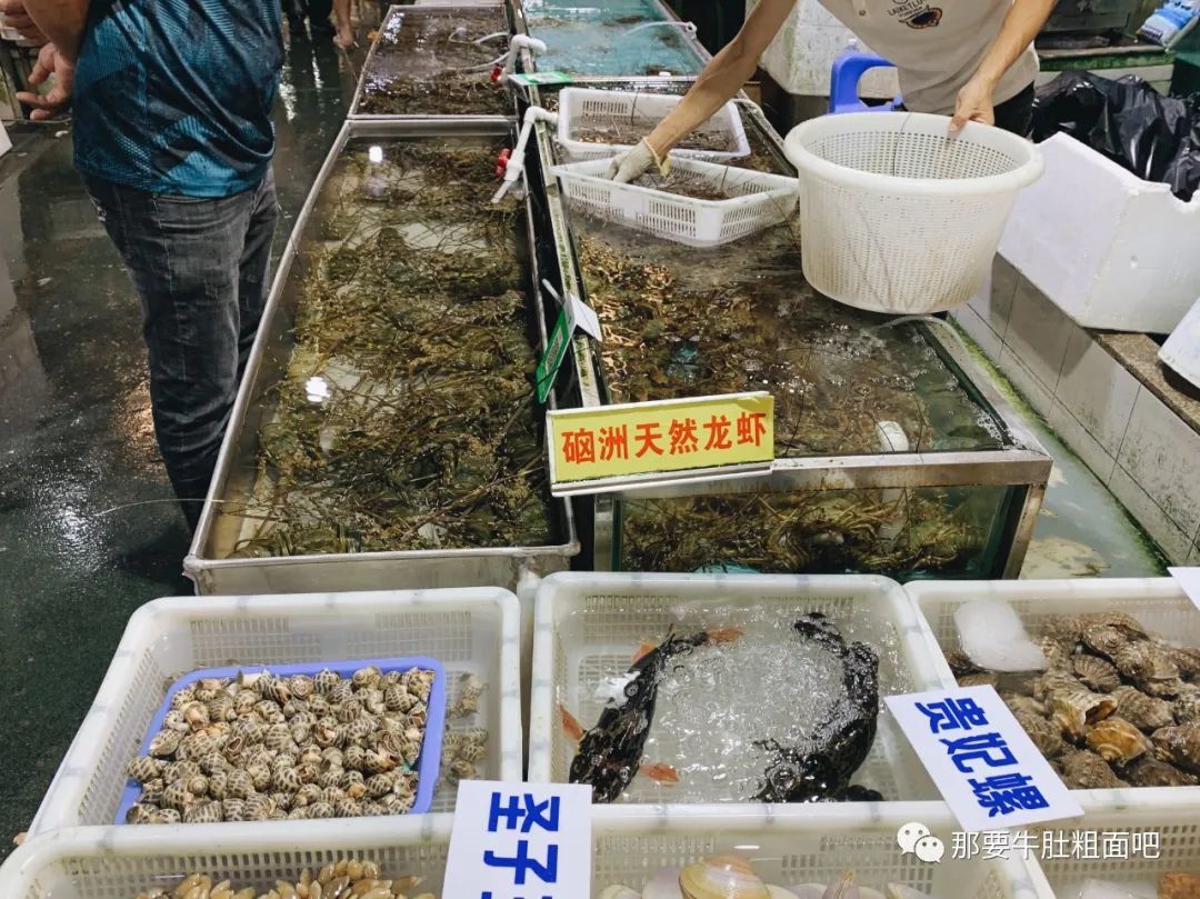 在攻略们颇为推崇的 猪仔荣看到典型夜排挡的气氛。所有食材摆在店门旁,一场大型粤语听力与海产辨认考试。