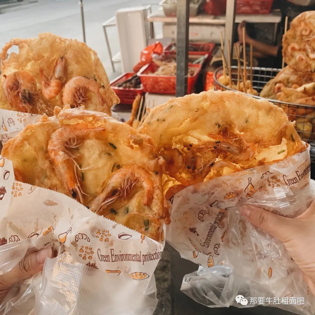传统小吃 炸炸嘢和 簸箕炊都无感。 炸虾饼倒是吃了两家:连锁的 男人老狗品相好,虾都摆得齐整。还有霞山市场门口的 榕树头,便宜饼大,但多出来的部分主要是面糊。