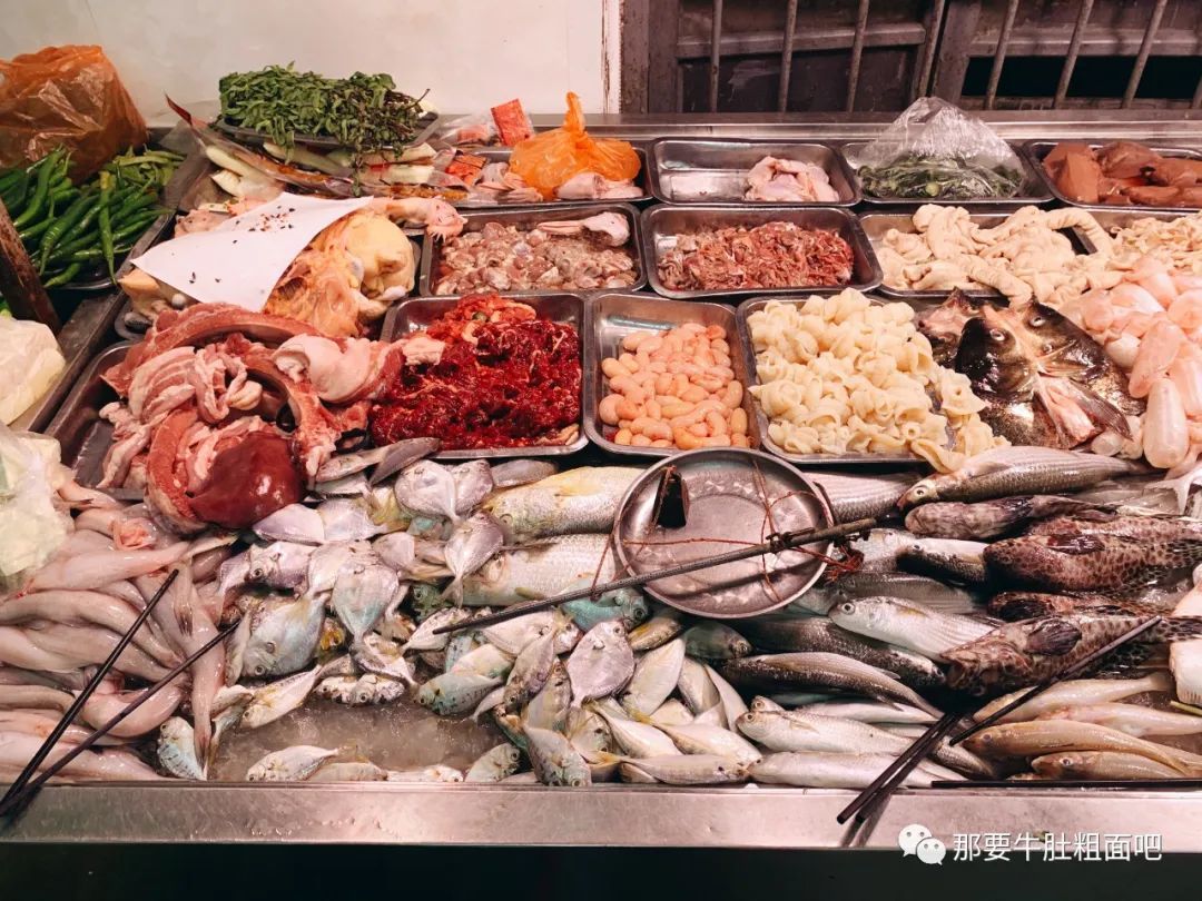 有趣的一餐是 牛杂打边炉。牛被分解得极细,各种部位的肉和内脏(包括猎奇的牛胎盘)堆在一起,指着让老板切,统统一个价,一股脑涮到锅里,人均五六十吃得身心愉悦。