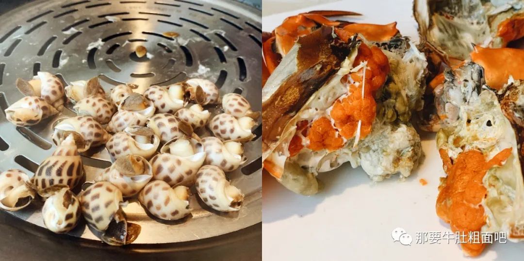吃的都是新鲜原味。我们挑了一只 膏蟹,抠搜搜每人分到三分之一只,十月金灿灿的脂膏无比丰腴,入口都是罪恶的滋味。