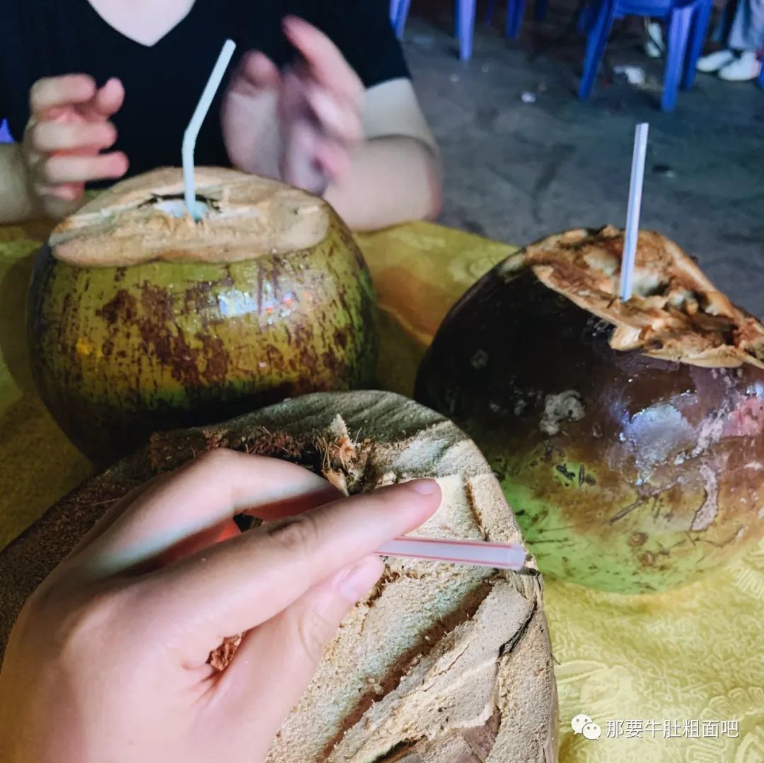 椰青也喝,年年涨价,多半是10块钱一个,见于露天大排档和码头海滩之类的摊子,游客多的地方还有开价15的。看到一次挂牌15元2个兴冲冲过去一问原来是棕色硬壳的泰国椰,个头小得可怜,还是城里套路深。