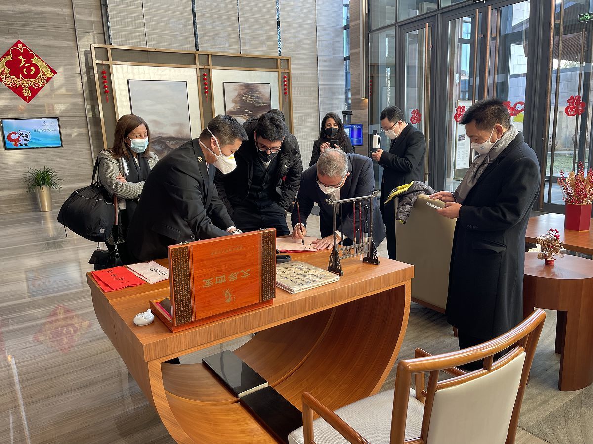 服务中,这样的中国元素还有很多,周容介绍,“为了丰富各个代表团的活动,我们准备了文房四宝,让服务人员教代表团的客人写福字,写好后,又帮他们贴起来,也特别受欢迎。”