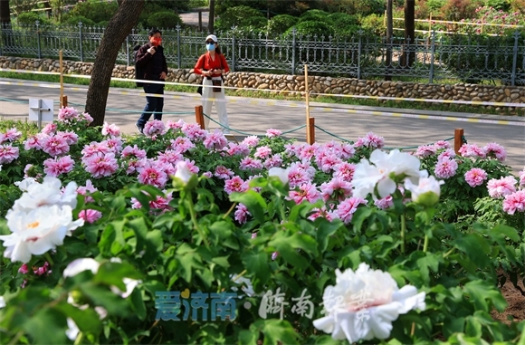 4月11日,走近济南泉城公园牡丹园,就会有牡丹花香扑面而来。受近期春日高温天气的影响,150多个品种数千株牡丹花开正艳,呈现出牡丹花之娇、色之艳、态之媚,吸引市民踏春赏花,品“国色天香”。