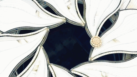 用大跨度钢结构屋构成一个独特的“旋风陀螺”