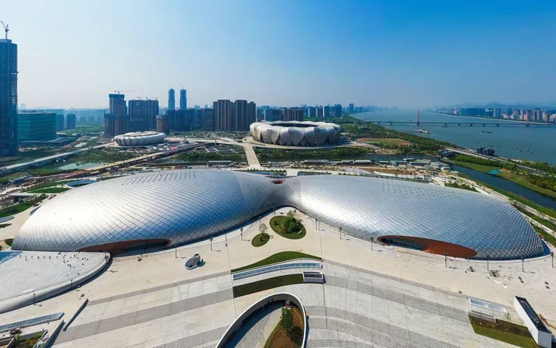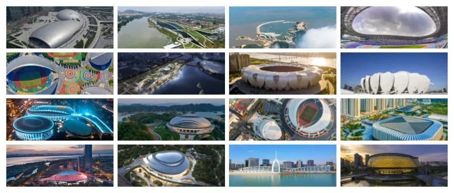 这56个场馆,以“杭州为主,全省共享”的原则,分布在杭州、宁波、温州、湖州、绍兴、金华各地。形似梁祝“化蝶”的杭州奥体中心体育馆、再现《富春山居图》的富阳银湖体育中心、外形演化自“中国龙”的温州龙舟运动中心等等,杭州亚运场馆上演着满满的中国式浪漫。