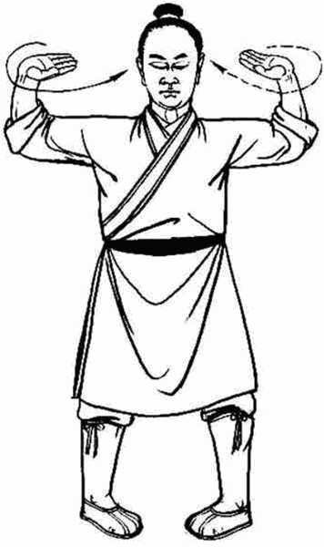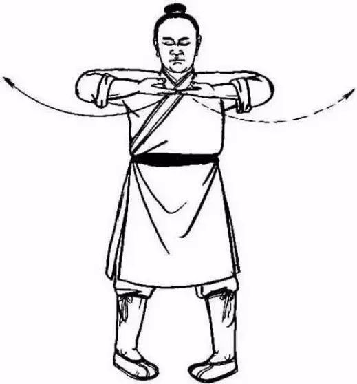 左右齐展扩胸肌,西山悬磬虎吼鸣。