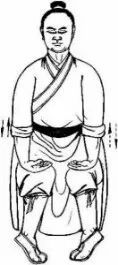 两踵提悬膝内扣,下沉伫立在脚尖。