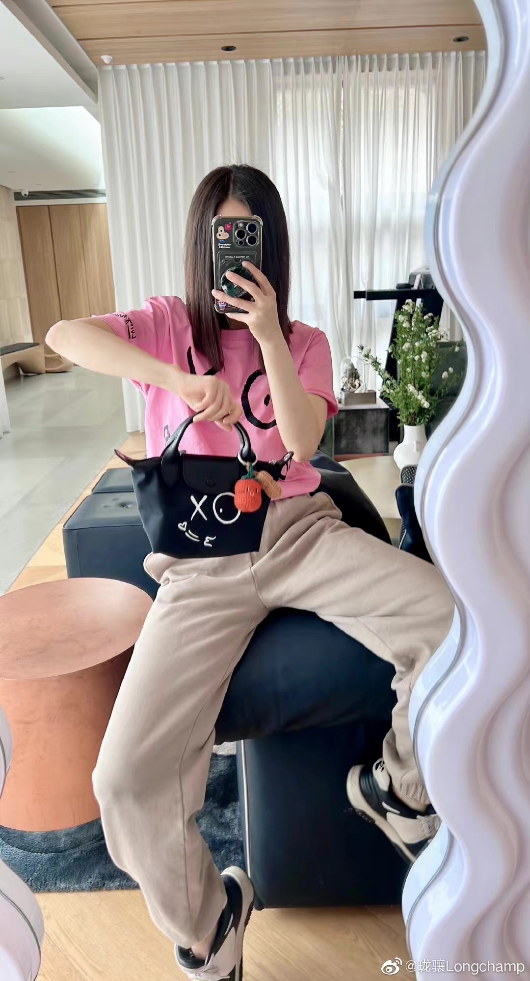 演员王子文在社交平台上晒出对镜自拍,身穿明媚亮眼的粉色T恤,手拿小巧精致的黑色手提袋,细看手提袋上面的图案也是俏皮可爱,让人忍不住想马上get!状态轻松闲适的王子文置身于层层圈圈的波浪纹镜子前,倍感温柔春日的暖意飞扬。