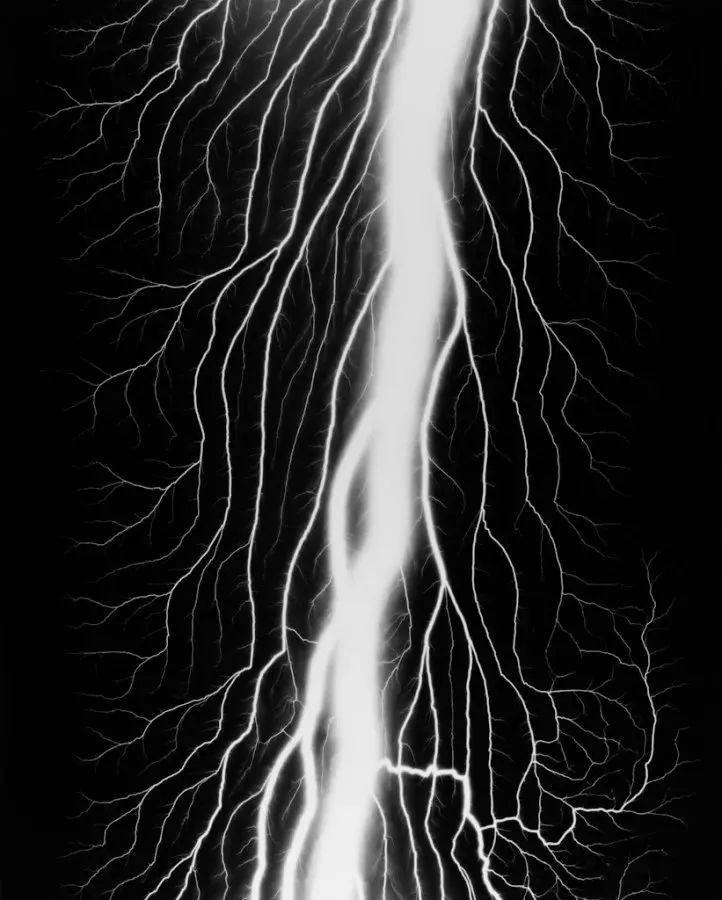 在《闪电原野》系列中,他甚至不再使用相机和镜头拍照。