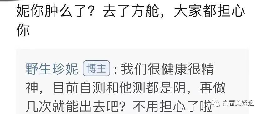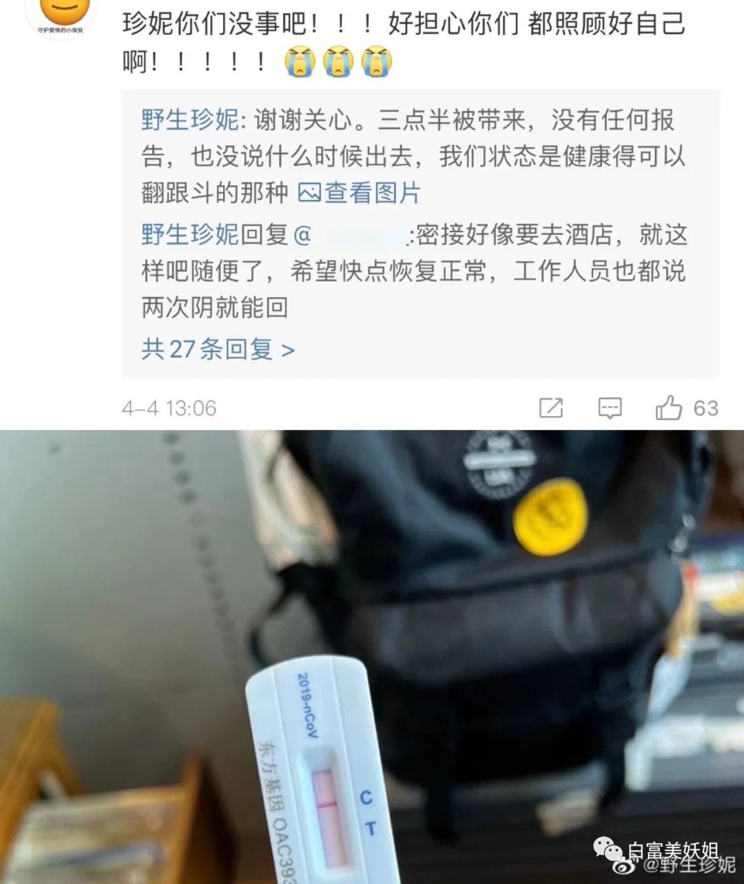而后续是,珍妮在方舱做了几次核酸都是阴性,目前已经回家了。