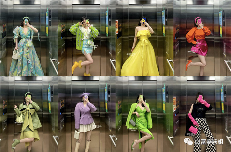 封城居家期间,上海徐家汇某小区的公用电梯,成了她的时装秀T台。