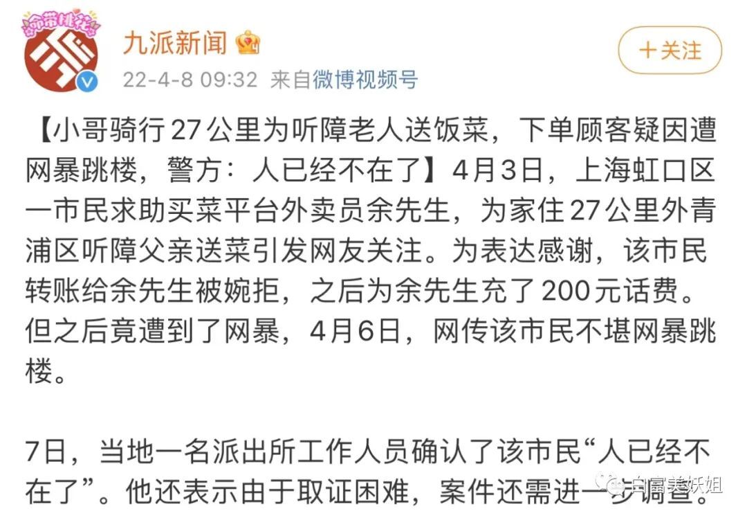 那位托叮咚小哥跨区骑行27公里,给听障父亲送饭菜的女士,被网暴到跳楼了。
