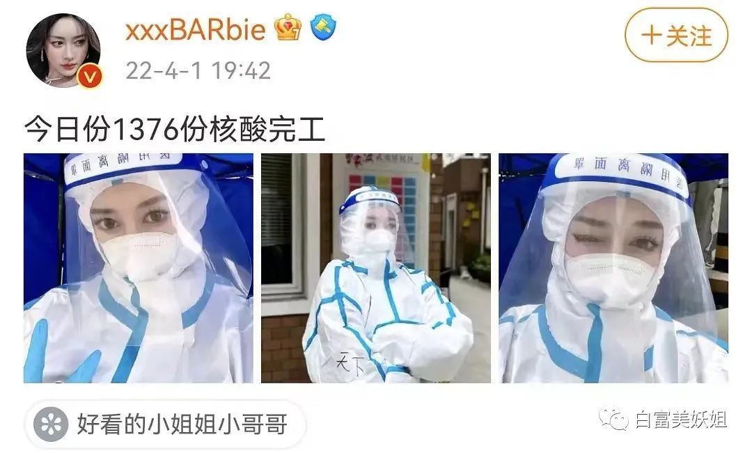微博9w粉丝的网红@xxxBArbie ,报名了社区防疫志愿者的工作。