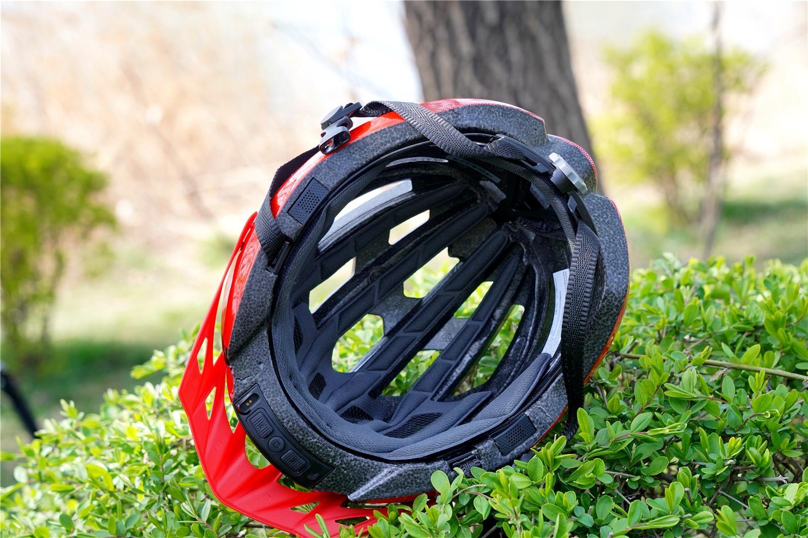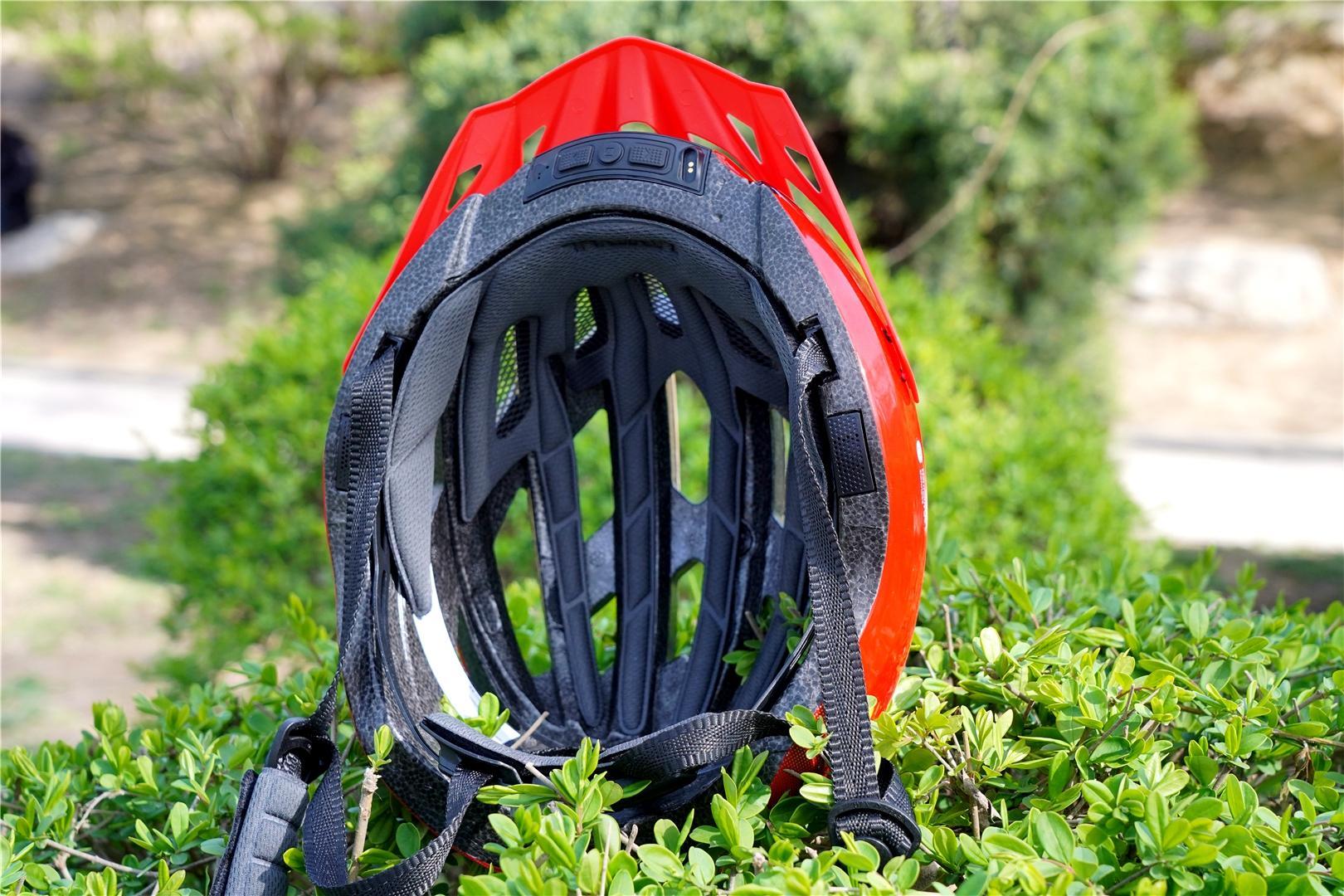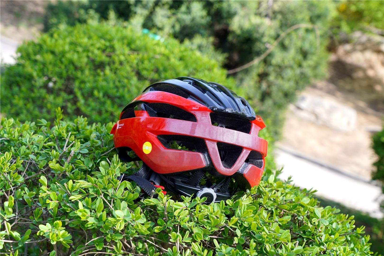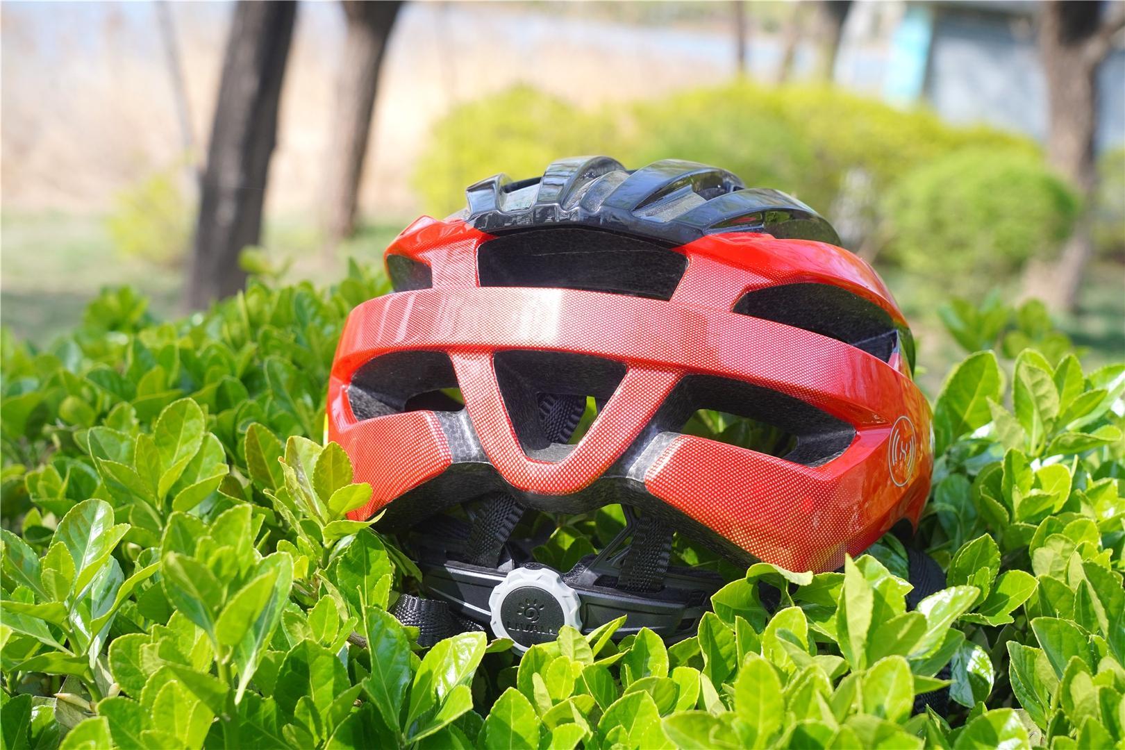 还有重要的一点就是颜值,哈哈,黑红颜色我最喜欢。而这种镂空的设计,不仅透气性好,还可以有效地降低头部的热量,给你一个清爽的头部环境,这一点也是我选择这款头盔的主要原因之一。