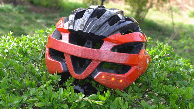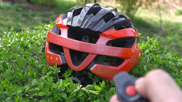 Helmetphone MT1 Neo智能骑行头盔的后面设计了警示灯。一共两排,底部左右设计为转向灯,可以使用无线遥控器控制。而中间的可以做到动态警示,这样晚上可以起到很好的保护起手的作用。