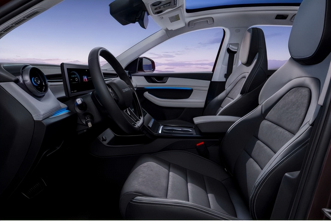 天际ME5还提供了备受年轻用户喜爱的一体式运动座椅,激光镭雕工艺,质感与舒适并存。温感变色氛围灯,绚丽色彩随心情自由变换,营造出专属于你的浪漫体验。在色彩搭配上,天际汽车的设计师从全球各地的自然景观中汲取灵感,打造高雅、精致、舒适的美学空间;纯黑、黑灰搭配的内饰配色,简约大气,凸显高级感。