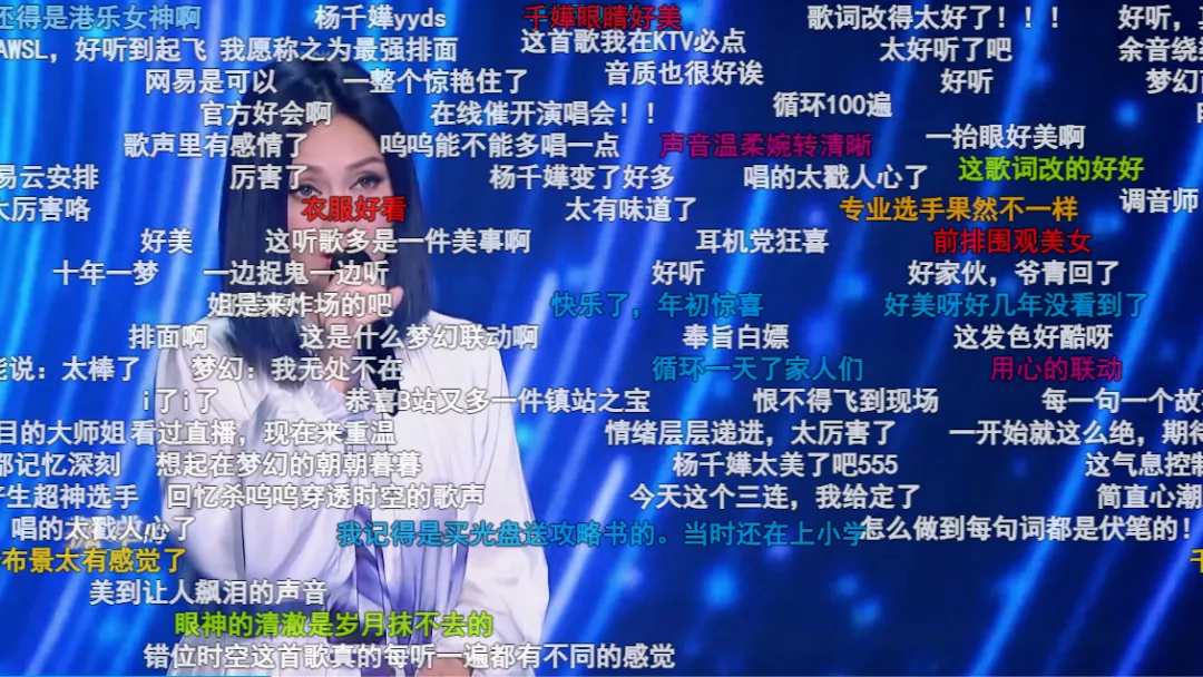 因此,当她在嘉年华上唱响一首梦幻版本的《错位时空》时,立马就点燃了玩家的怀旧热情。这段演唱视频在B站,更是引发了满屏的“爷青回”弹幕刷屏,彻底引爆了玩家的热情。